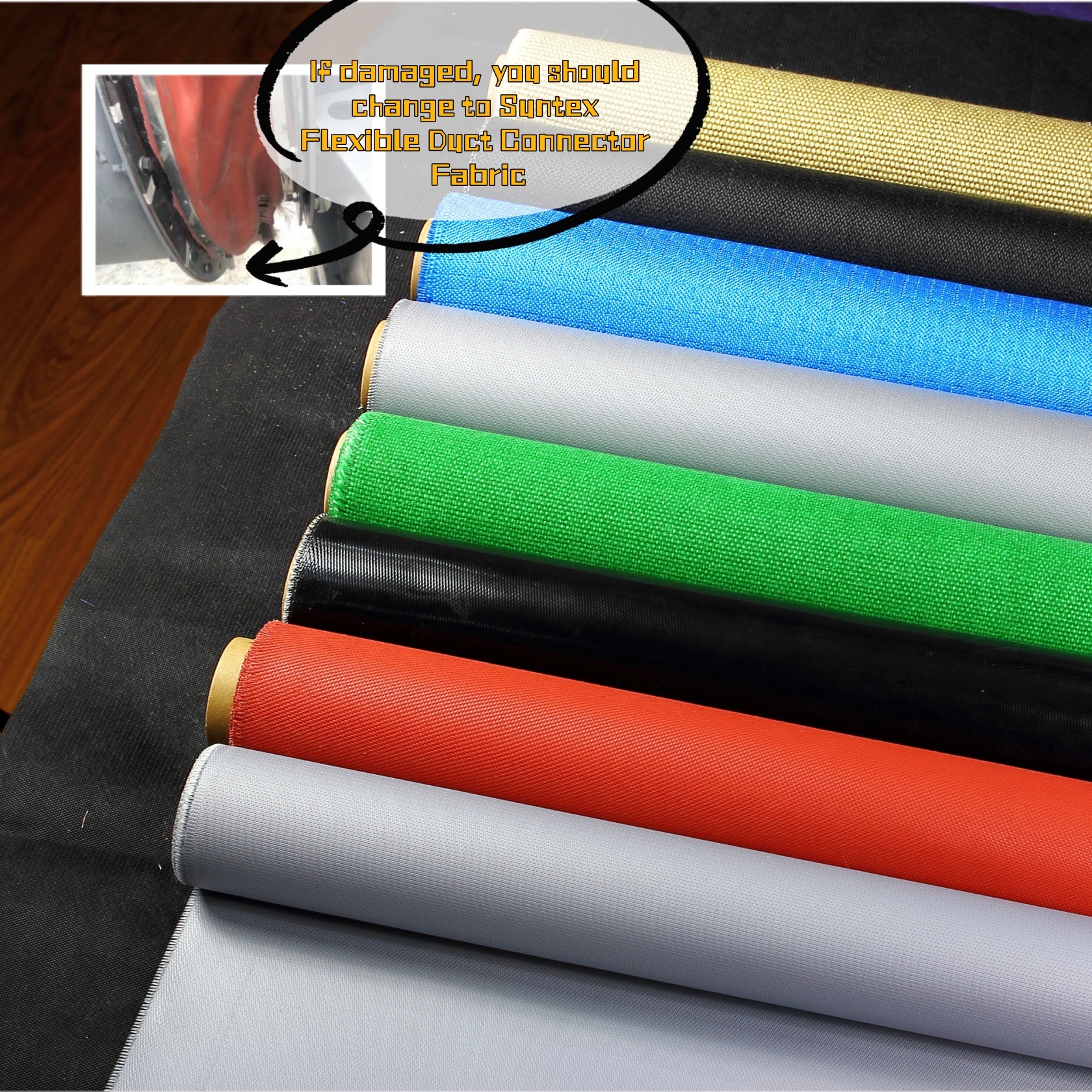 Sistema de aire acondicionado Conector de conductos flexibles Tejido de neoprene Color negro