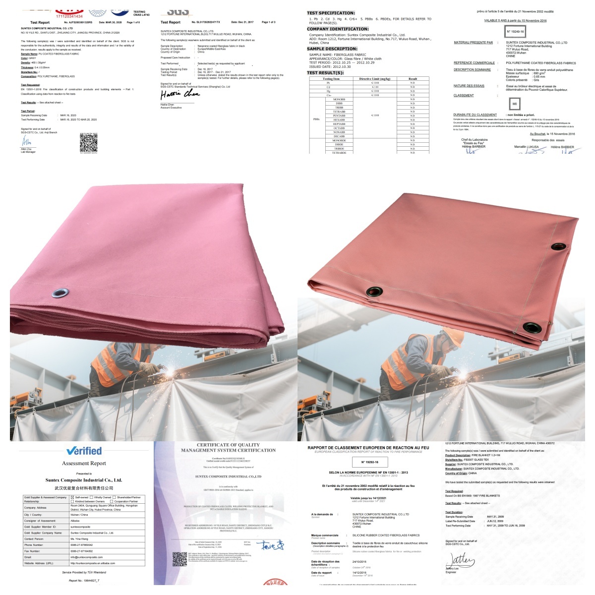 Las mantas de incendio Suntex Industrial están hechas de tejidos tejidos de fibra de vidrio y pueden soportar temperaturas de hasta 550 °C. Completamente libres de amianto.protección contra chispas y salpicaduras de molienda para industrias, gasolinera, almacén, terreno de construcción.